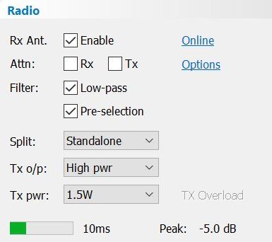 - Attn Enable attenuation of the received signal, Tx enables the attenuator while transmitting.