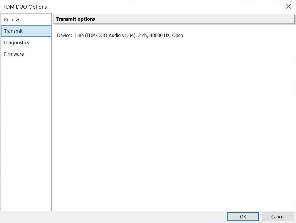 - From the Console's Radio panel click Options, this opens the FDM DUO Options.