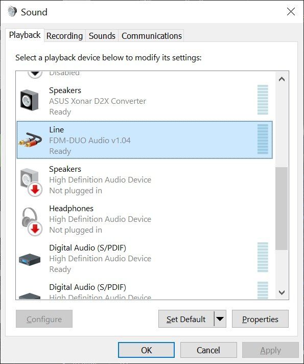 - Open the FDM-DUO Audio v1.04 properties (double-click on the entry).