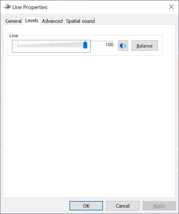 Make sure the USB audio device (above) is correctly configured with the Level set at 100.