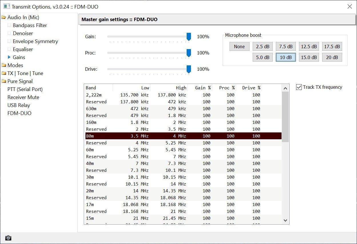 - RX Mute, this mutes the receiver while transmitting as the DUO runs in full duplex.