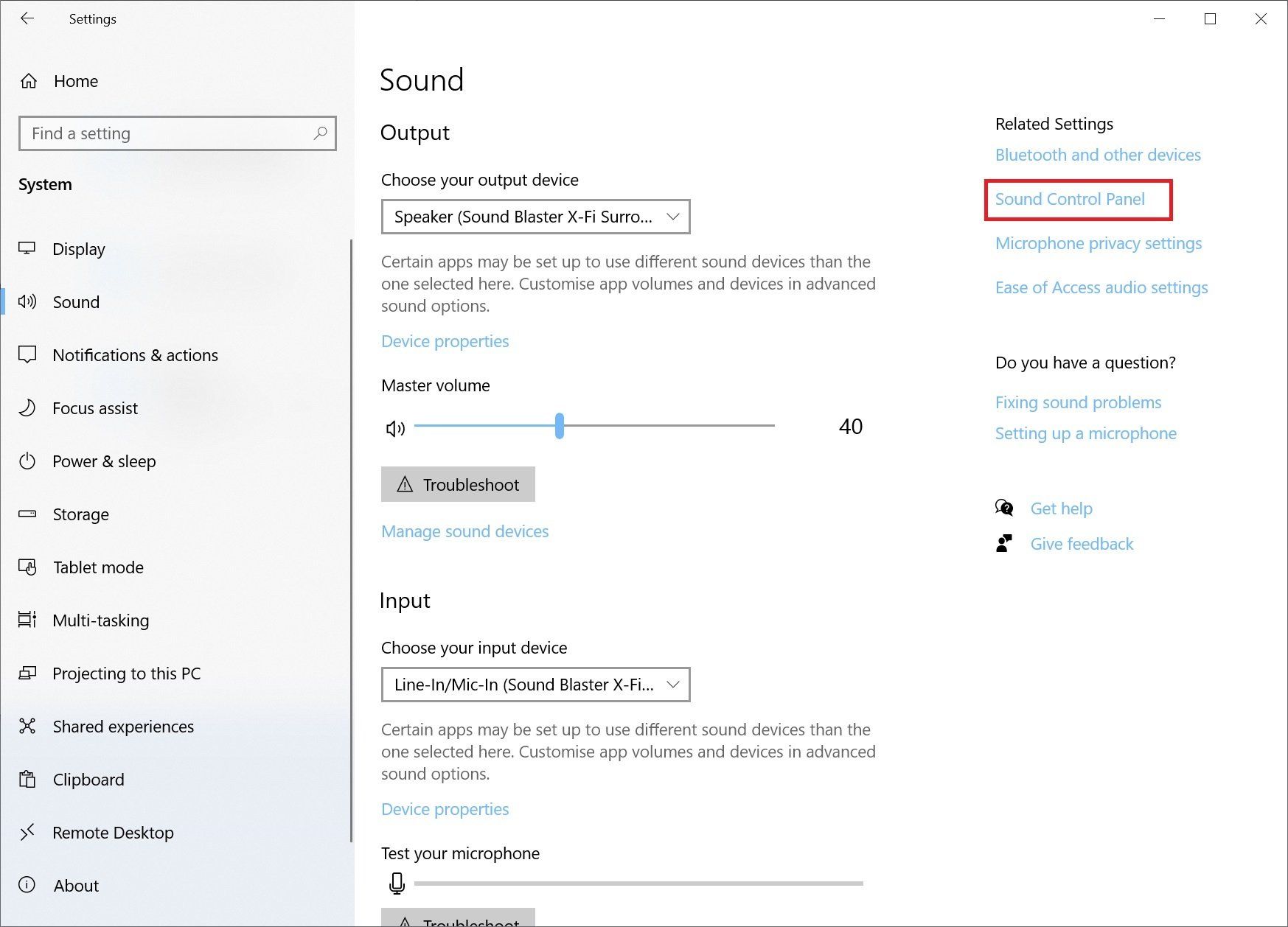 - Either select System, Sound or enter Sound in the Find a Setting field,