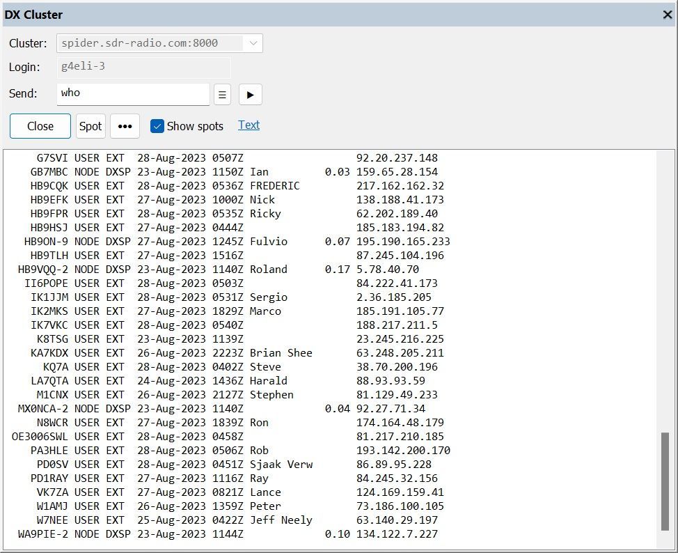 Please do not send e-mail direct to me (simon@sdr-radio.com), instead visit the Support page. I just don't know all the answers. This software supports many different SDRs, I can't remember all the unique features and configuration settings. Use the mailing list or support forums to connect with other users.