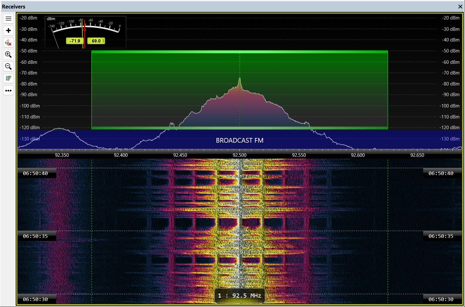 All receivers have a Signal Meter (S Meter). SDR Console offers a digital bar and a psudo analog meter.