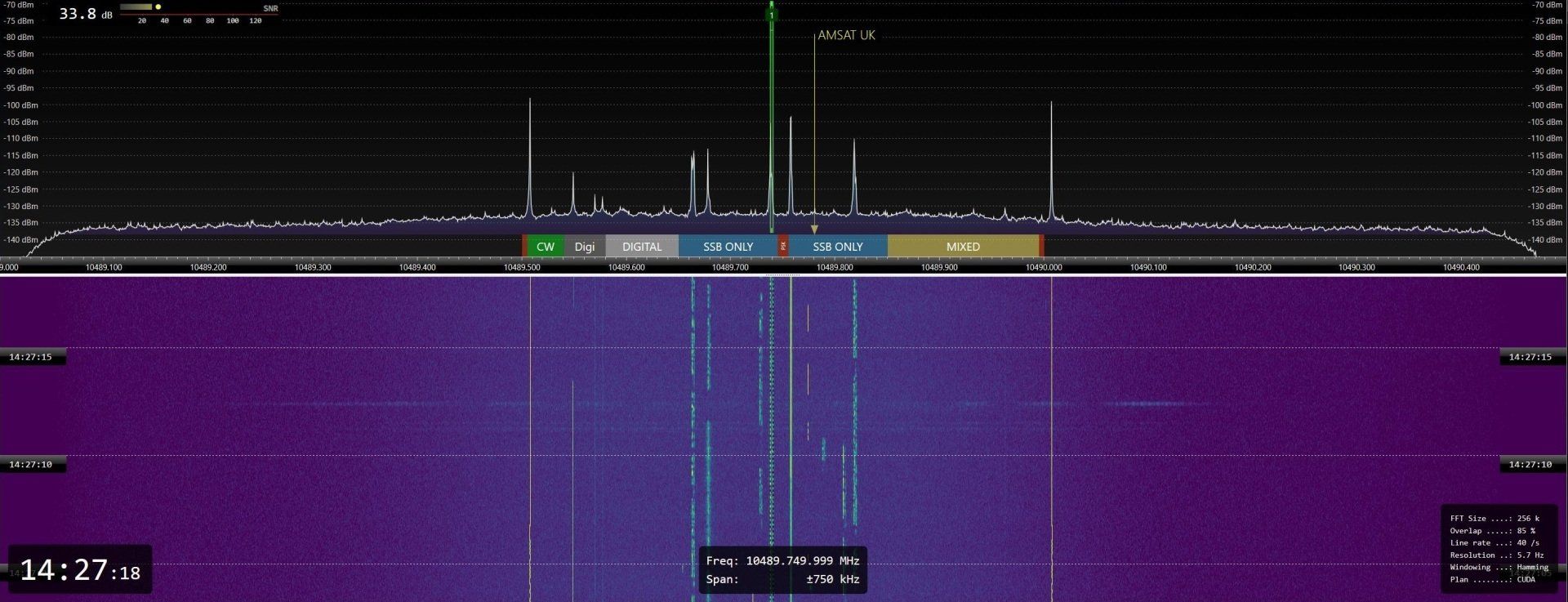 There is a special feature in SDR Console which locks the receiver to the digital beacon on the narrow-band transponder, so reception is perfect.