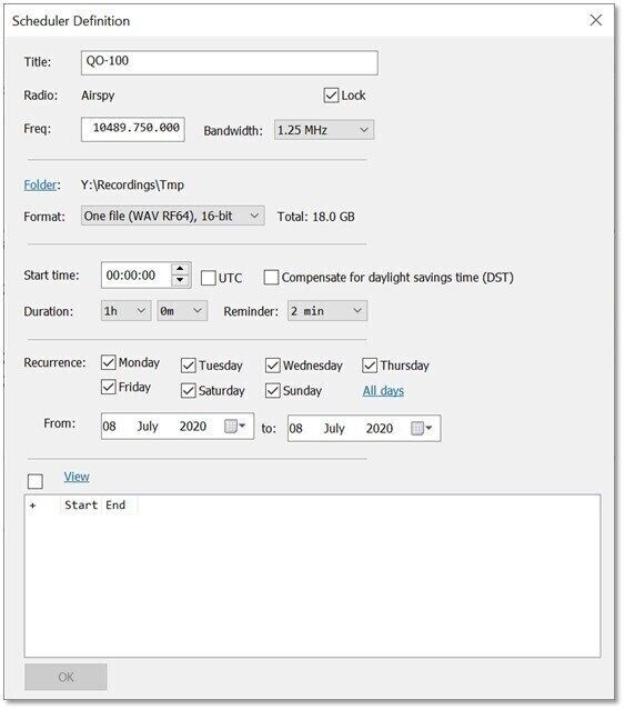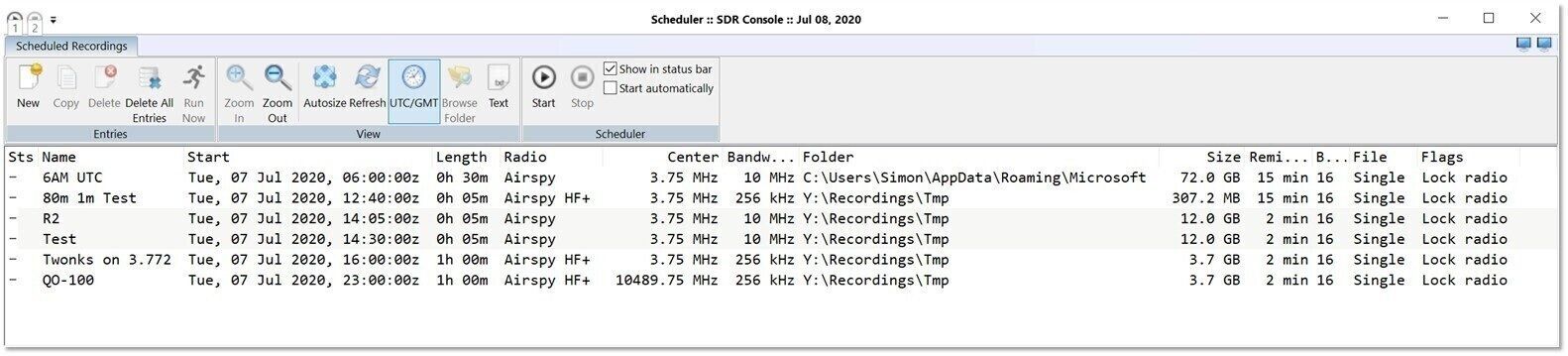 - Open from: Ribbon bar, Rec/Playback, Data :: Scheduler, Schedule.