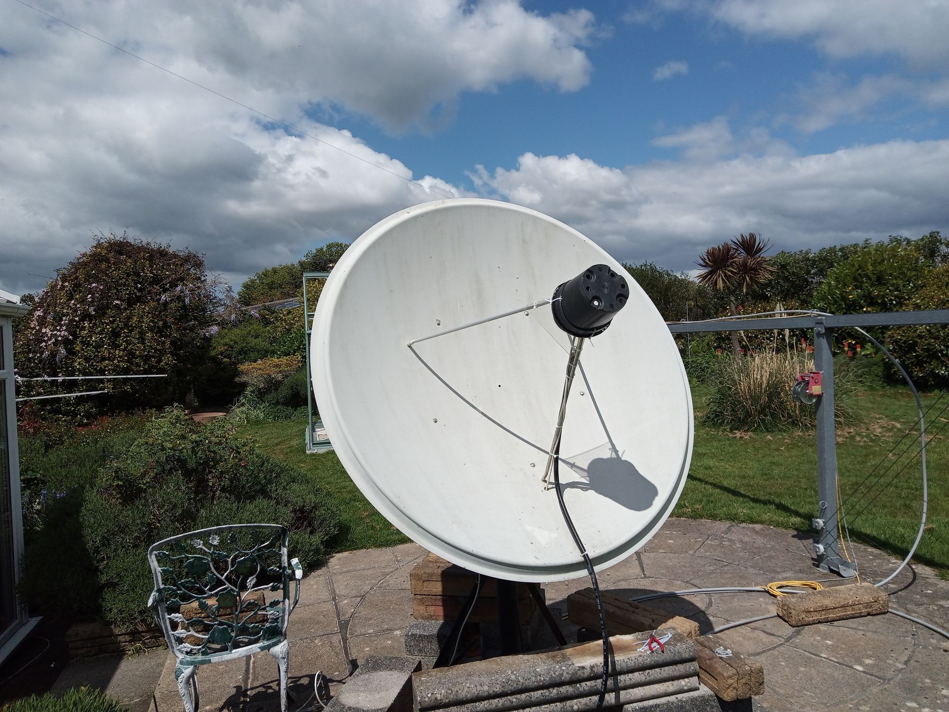 In a month or three I'll be using a LibreSDR. Also, I'm hoping to find a Raven 2.4m dish someday, this would give a gain of approximately 3 (4.77 dB) over the 1.4m dish (compare the surface areas).