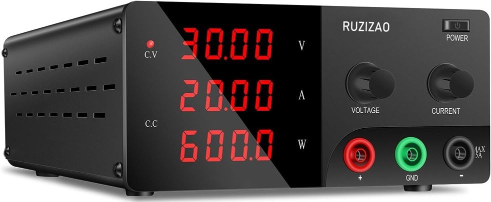 The power supply is a RUZIZAO 30V 20A Bench Power Supply which runs at 28V. I like this device as it also shows the wattage.