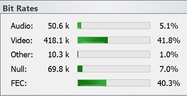 - In the Receiver panel, Bit Rates all meta data packets (PAT, SDT etc.) are shown as Other.