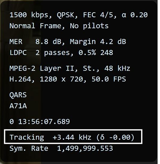 The Decoding Overlay now shows Tracking instead of Offset. The first value is the offset applied to the IQ data from the SDR, the second the current offset from the first value. The first value is updated when the second value is greater than 1/10,000 of the symbol rate.