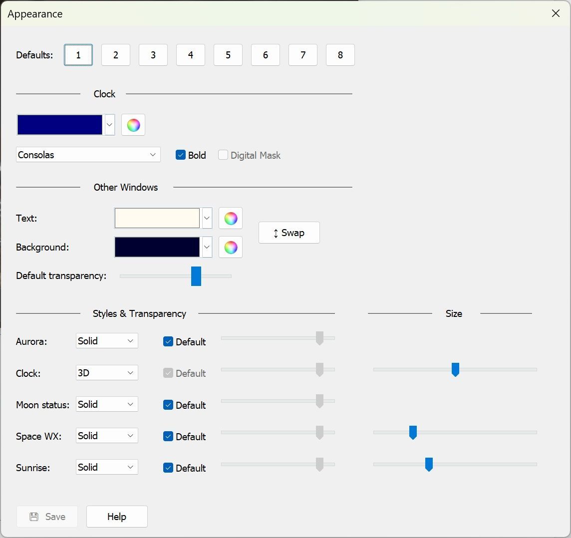 The Space weather and Sunrise windows now have a border, drawn with the text colour.